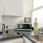 The apartment is set over 261 sq ft and comprises a large living room area, modern bathroom and a unique kitchenette and access to a private gated communal garden.